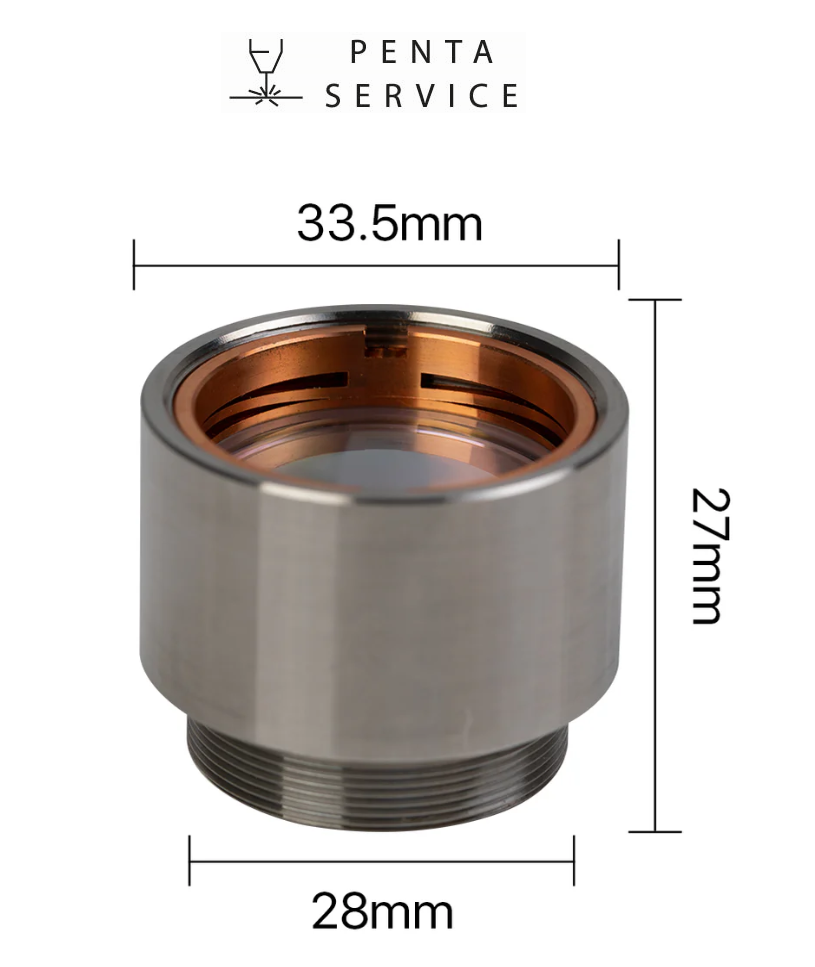 Объектив коллиматора BT210(S), BT210 D28 F100 мм в сборе, артикул FCFL02D28F100 для коллимации лазерного луча. В комплект объектива входит линзодержатель и линзы с разным типом кривизны поверхностей: двояковыпуклая и выпукло-вогнутая (мениск). Объектив PENTA SERVICE применяется в блоке коллиматора в лазерных головках Raytools® BT210(S), BT210, в станках Bodor® и других производителей где используется данная головка.
