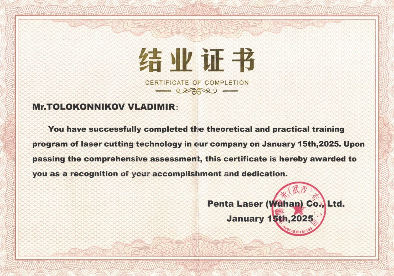 Сертификат Толоконников